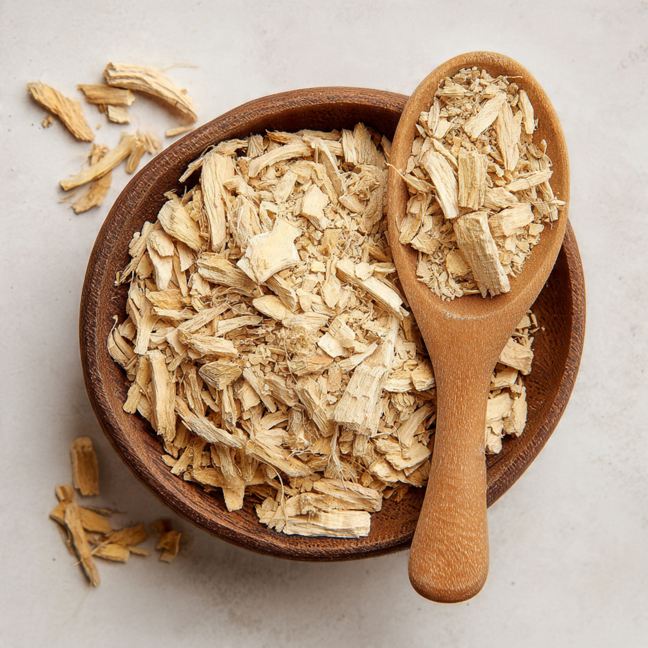 Production begins with the harvesting of mature roots, which are cleaned thoroughly to remove soil and natural field material. The roots are then dried under controlled conditions to reduce moisture while preserving their natural colour and fibre density. After drying, the roots are mechanically cut into small, uniform pieces and sifted to remove fines and ensure consistency in size. The resulting material is a stable, unaltered botanical root product with no additives or further processing applied.
