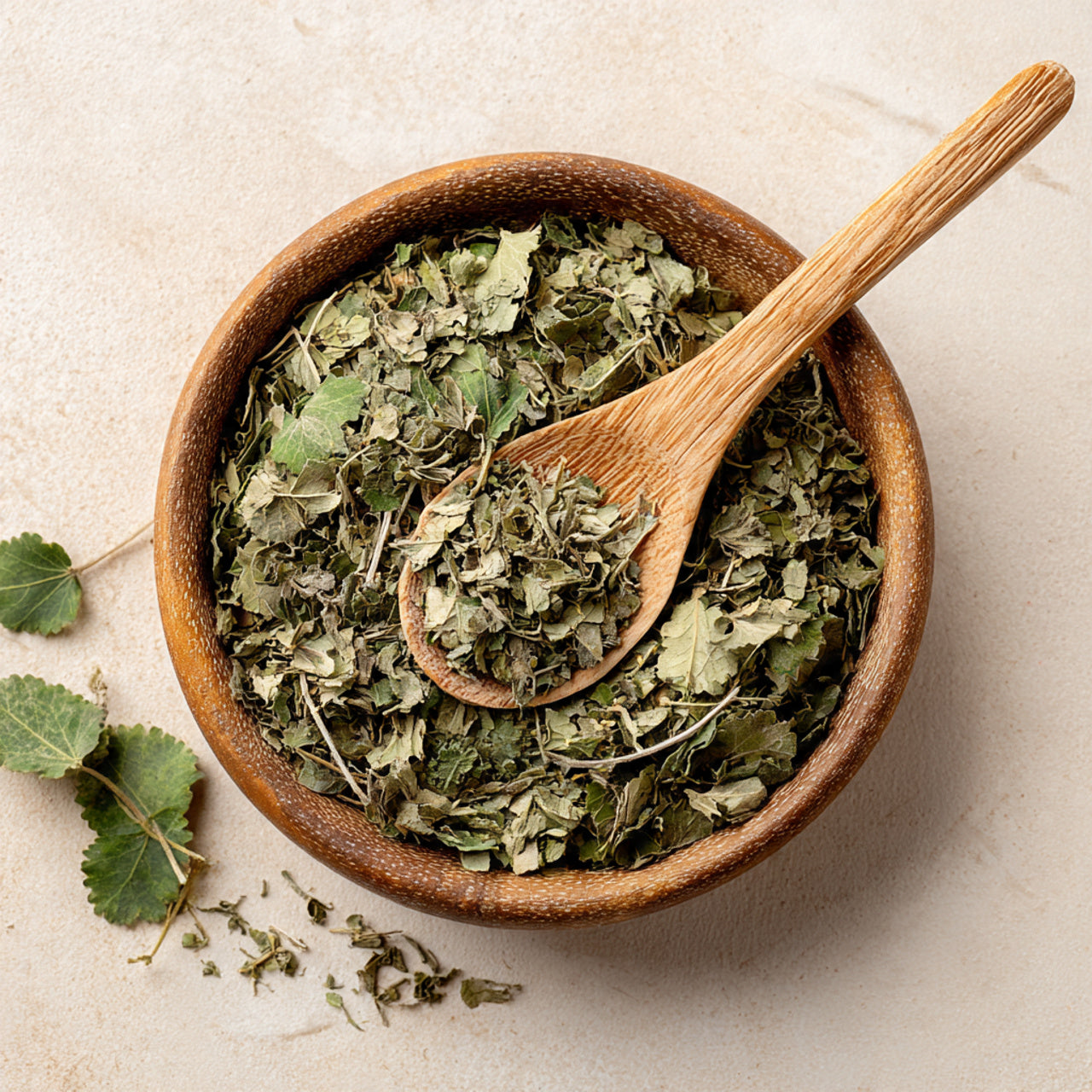 Aerial parts are harvested during the active growing season and cleaned to remove field debris. The material is dried using controlled air drying or warm air methods to reduce moisture while maintaining colour and structural integrity. Once dried, the herb is mechanically cut and sifted to produce a uniform grade with consistent texture.